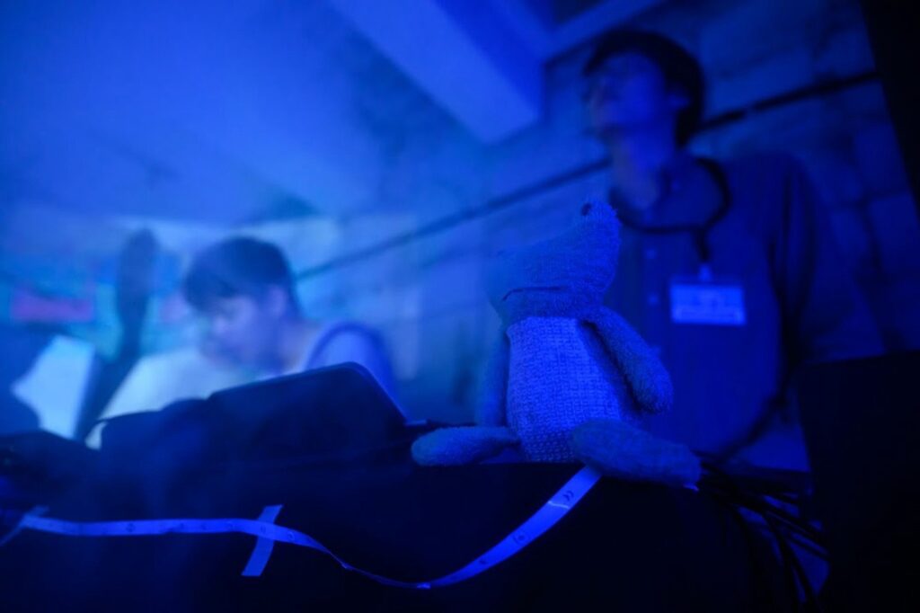 暗い場面はしっかり暗く、めいっぱい明るくしたい場面では壁にバックに#FFFが投影されていました。