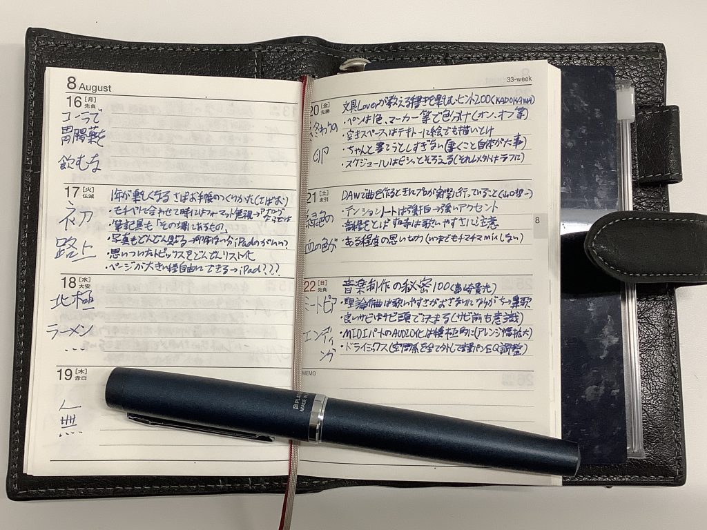 現在手帳に書き込む筆記具は万年筆1本なのですが、マーカー2色くらいは足してみたほうが見やすいのかな〜とか思ったり。