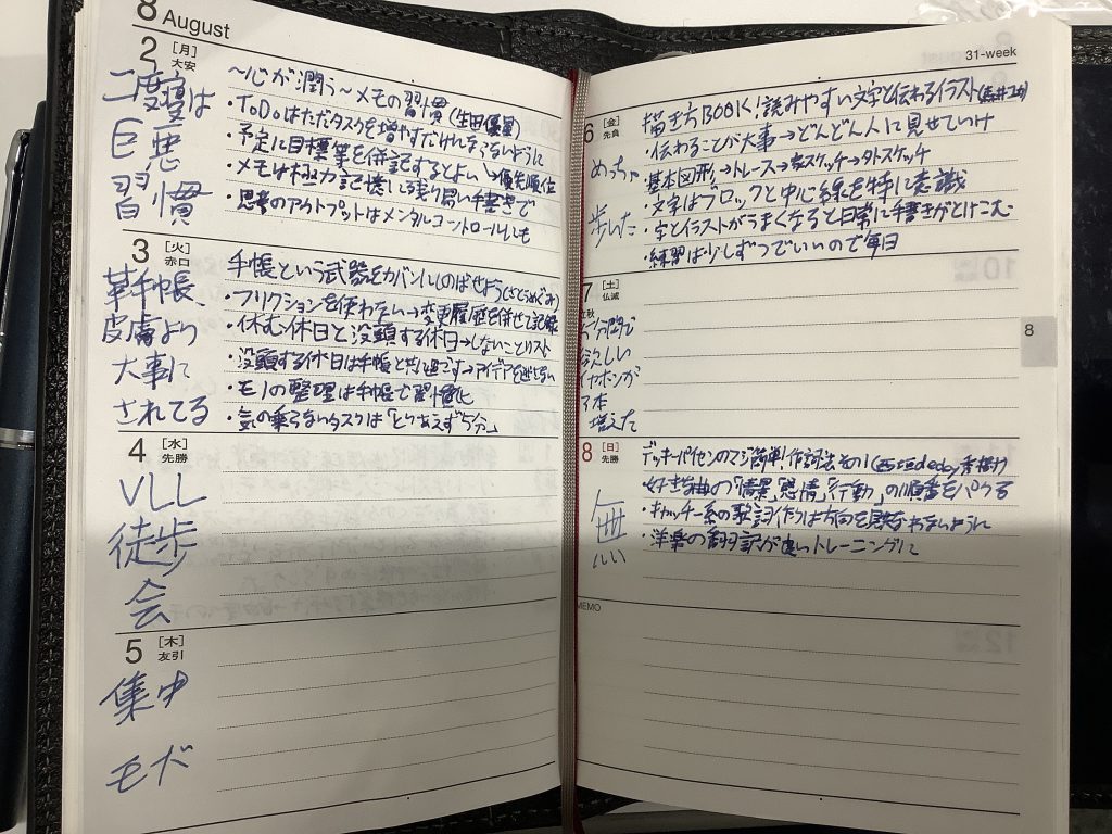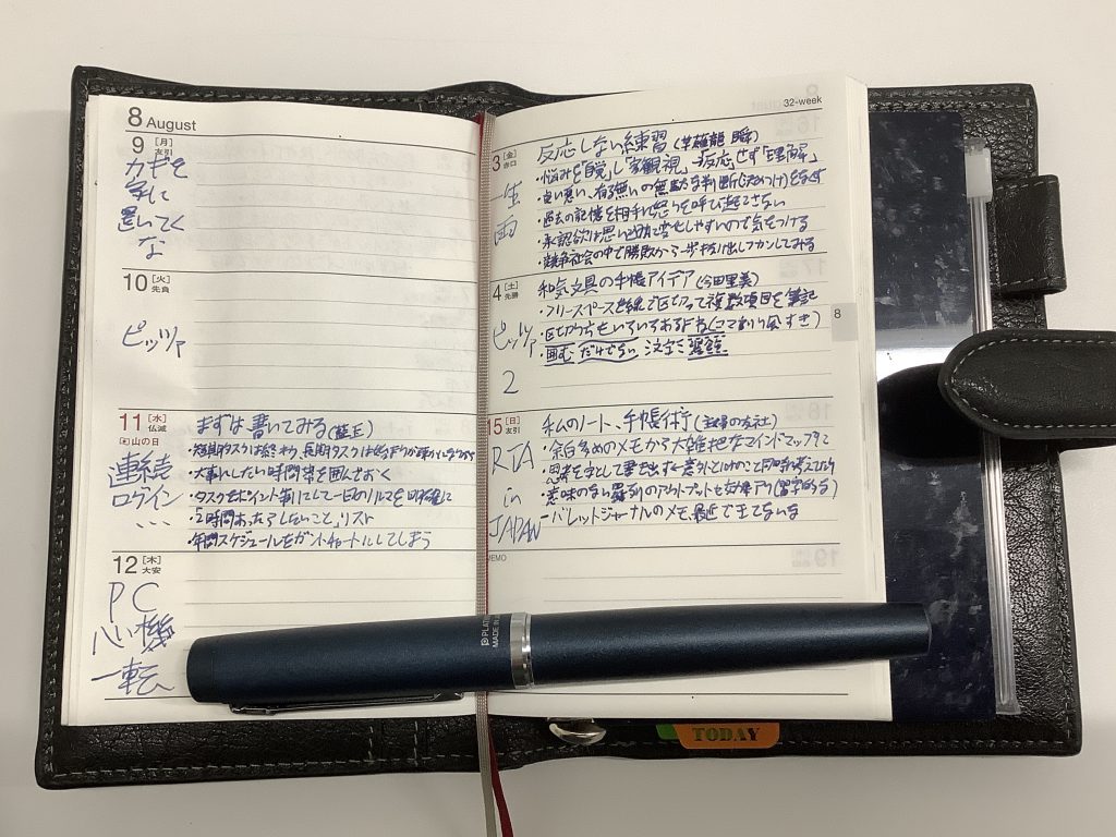 手帳に思考をアウトプットする有効性は方々で説かれていますが、意味のない羅列を書き連ねるのも習字と同じ要領で効果があるのだそう。